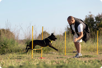 Our professional walkers use the natural environment for enrichment: climbing rocks, jumping over logs, water play, and more. Dogs practice sit, stay, loose lead walking, and even learn new tricks — all through fun and games that keep their focus on the handler.
